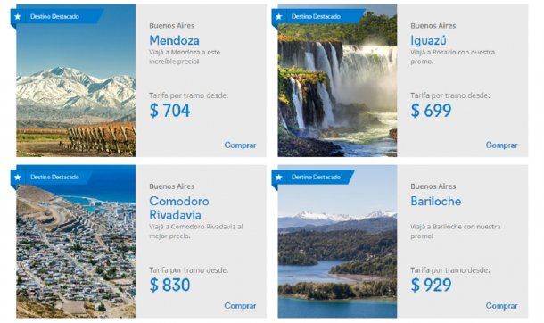 Son para viajar dentro del país, pero en especial a Córdoba, San Carlos de Bariloche, Mendoza e Iguazú. Se pueden comprar hasta el miércoles.