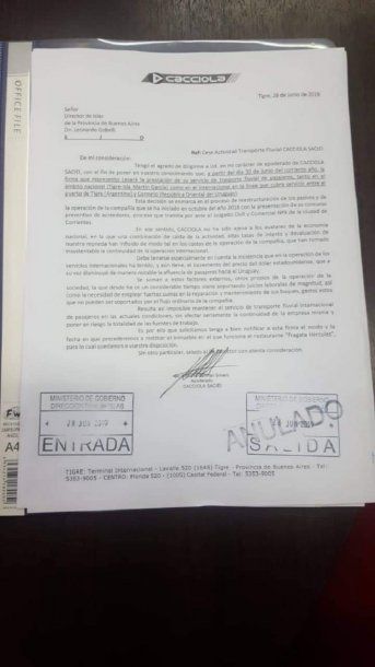Cacciola argumentó que “no ha sido ajena a los avatares de la economía nacional, en la que una combinación de caída de la actividad, más altas tasas de interés y la devaluación de nuestra moneda han influido de modo tal en los costos de la operación de la compañía se ha tornado insostenible la continuidad de la operación”.