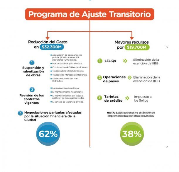 Por otro lado, el fuerte achique del gasto público impactará en todas las concesiones actuales: se revisarán los grandes contratos y servicios que brinda la Ciudad; se eliminan exenciones impositivas (ingresos brutos) a operaciones financieras como las Lelics; y se empezará a cobrar el impuesto a sellos - una tasa del 1,2%- al consumo de las tarjetas de crédito (otras provincias ya lo aplican como Buenos Aires, cuyo gravamen es del 1,5%).
