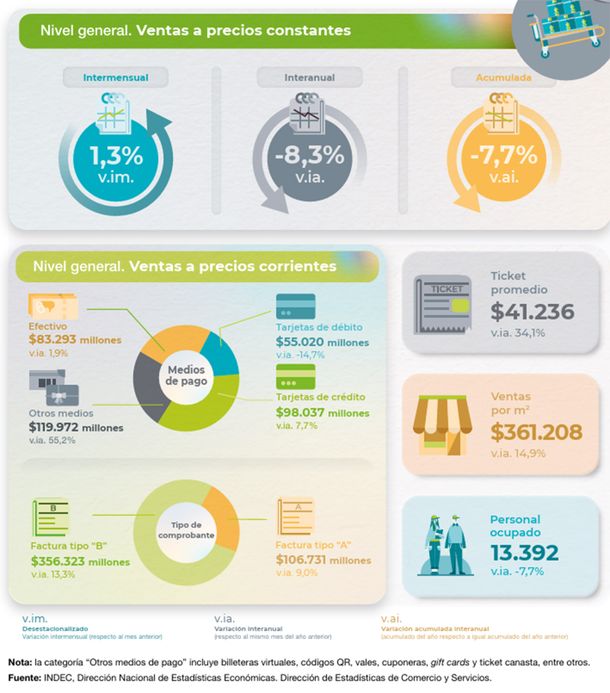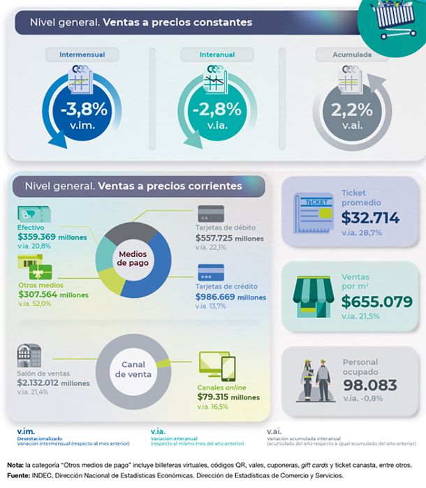 Las ventas en los supermercados, autoservicios mayoristas y shoppings volvieron a caer en noviembre pasado con respecto al mismo mes del 2024, según informó este jueves el Instituto Nacional de Estadísticas y Censos (Indec).