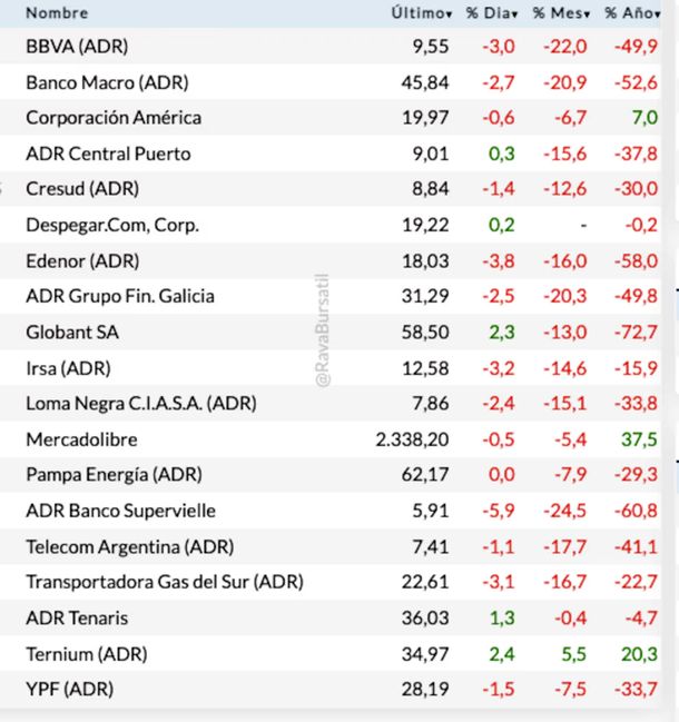 En contrapartida, mientras el billete estadounidense sube su cotización pasa la contrario con las acciones argentinas, que en su mayoría sufrieron pérdidas, a pesar de que se registraron cifras récord en los índices de la bolsa de Nueva York, con ganancias en un rango de 0,7% a 1,4%.