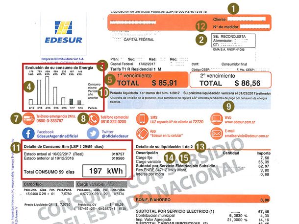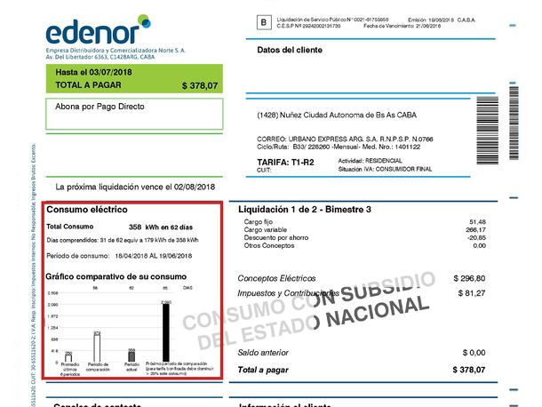 En el caso de Edenor y Edesur, los datos sobre el consumo mensual aparecen en el margen izquierdo de la boleta.