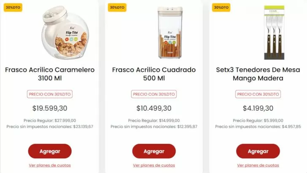 Los productos en promoción incluyen desde vajilla y cubiertos hasta frascos, vasos térmicos y utensilios de cocina de primeras marcas. Las ofertas estarán disponibles por tiempo limitado y sujetas a stock, por lo que se recomienda consultar disponibilidad en el local más cercano o en las plataformas online.