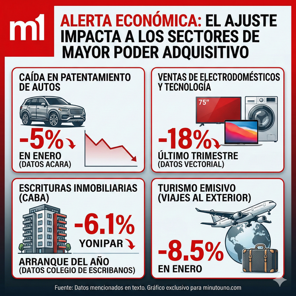 Uno de los primeros sectores en evidenciar este freno fue la venta de autos. Según los datos oficiales difundidos por ACARA, el patentamiento de vehículos experimentó una caída del 5% durante el mes de enero.