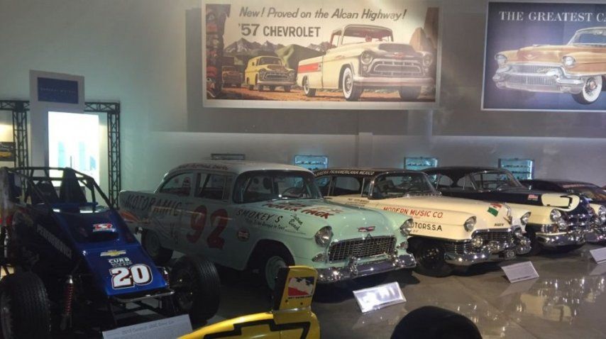 Entre carteles de luces de neón que trasladan a los Estados Unidos de hace setenta años, hay un sector exclusivo de motores, para quienes disfrutan de la mecánica pura, casas rodantes, camiones de GMC, documentos y artefactos históricos que resumen la vida de General Motors.