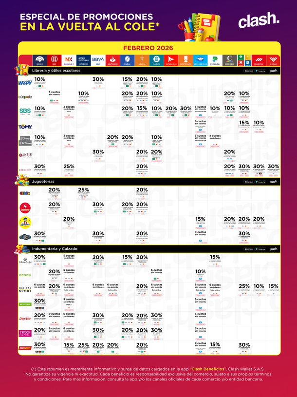 Con precios de cuadernos básicos que arrancan en los $3.500, carpetas desde $8.000 y guardapolvos que pueden llegar a costar hasta $48.000 en locales tradicionales, las promociones bancarias y de billeteras digitales se han convertido en una herramienta indispensable para amortiguar el impacto inflacionario.