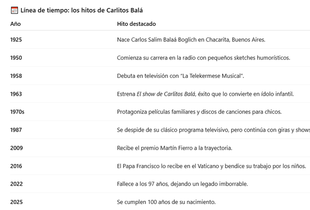 Durante más de medio siglo, fue protagonista de programas como El show de Carlitos Balá y Balabasadas, además de películas, discos y giras teatrales que lo consagraron como el “amigo de todos los chicos”. Incluso, en los últimos años de su vida, logró conectar con nuevas generaciones gracias a las redes sociales y a su participación en eventos populares como el programa de Panam y la Fiesta Nacional de la Primavera en distintas ciudades.
