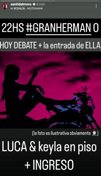 "Mañana ella", escribió Santiago del Moro en la foto que subió a su cuenta de Instagram. La imagen muestra a una mujer sobre una moto, sexy y misteriosa, ya que su rostro no puede verse.
