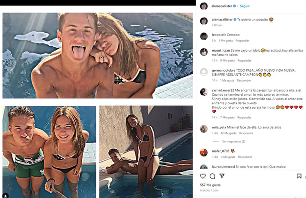 El jugador no borró ni archivó una publicación del año 2015 en que le dedicó un cariñoso collage de fotos de ambos en la pileta con la leyenda "te quiero un ppquito" y un emoji con ojos de corazones.