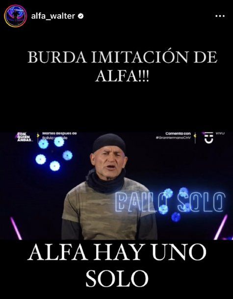 En su cuenta de Instagram, Alfa compartió una imagen de la presentación de Francisco. El panelista de Polémica en el bar reposteo un mensaje que le llegó, que resumió su opinión: "Burda imitación de Alfa", a lo que él agregó: "Alfa hay uno solo".