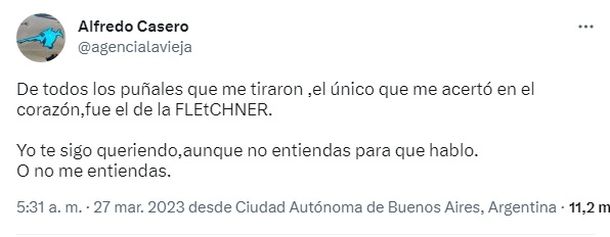 “De todos los puñales que me tiraron, el único que me acertó en el corazón, fue el de la Flechner”, reconoció Casero.