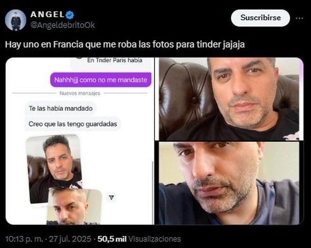 Ángel de Brito sorprendió a sus más de 3.5 millones de seguidores en X al revelar una situación insólita: una persona en Francia está utilizando sus imágenes personales para crear un perfil falso en la aplicación de citas Tinder. Algo que, sin dudas, es completamente ilegal, pero que sorprendió al conductor.