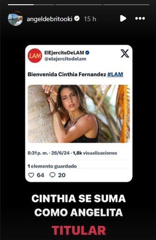 La mediática ya es querida por el equipo actual de LAM, ya que forma parte de la historia del programa. En varias ocasiones, Cinthia Fernández habló de sus ganas de volver al ciclo de Ángel de Brito, pero explicó que por el horario se le dificultaba, ya que tiene que estar muy presente para sus tres hijas en etapa escolar.