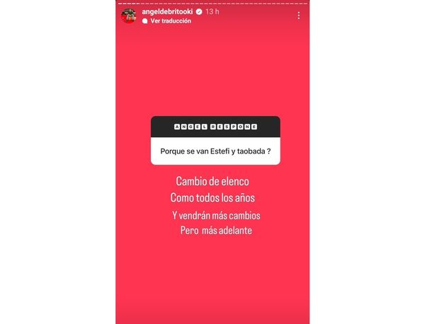 Ante esto, Ángel respondió: ”Cambio de elenco. Como todos los años. Y vendrán más cambios pero más adelante”, escribió el conductor.