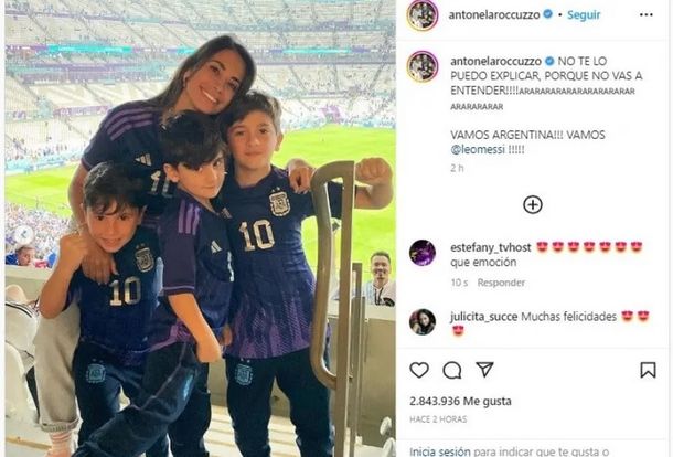 El posteo de Antonela junto a los niños, superó el millón de me gustas en solo media hora. Al pie, miles y miles de mensajes de los hinchas argentinos, entre ellos de muchos famosos que no tardaron en festejar junto a la empresaria.