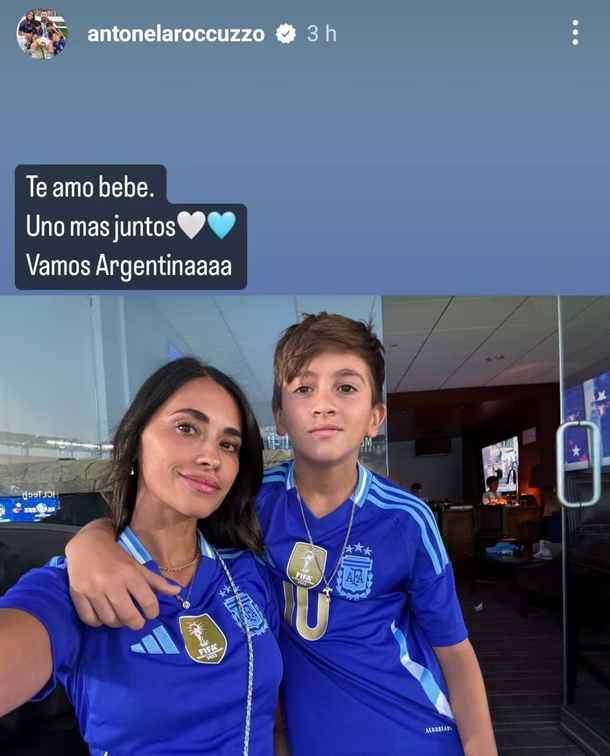 De hecho, en las últimas horas se volvió viral en redes sociales por mostrar su felicidad por la victoria de Argentina contra Chile. Aunque, lo cierto es que no lo hizo sola, sino que ahora posó junto a su hijo mayor, Thiago Messi.