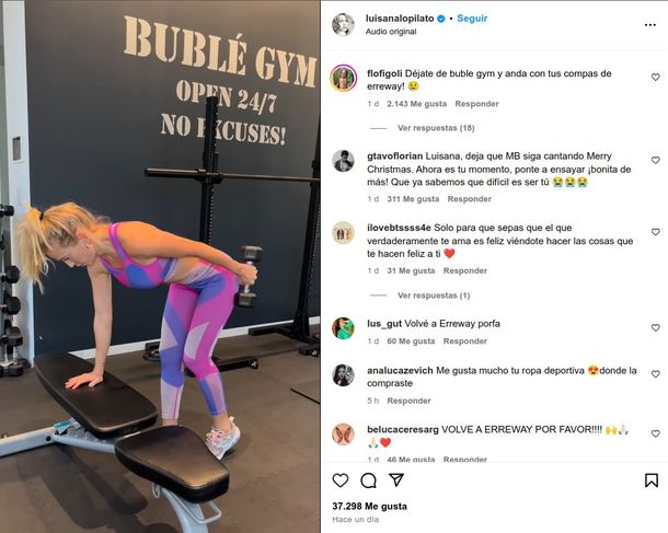 Mientras Michael Bublé se prepara para temporada navideña al mejor estilo Mariah Carey, Luisana Lopilato muestra en Instagram su rutina de ejercicios en su "Bublé Gym" (es decir, en el gimnasio de su casa), y más de uno vio el video como una invitación a pedir explicaciones sobre por qué no será parte de Erreway en su versión 2025.