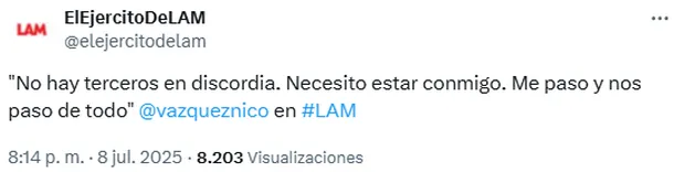 Nico Vázquez se confesó en LAM tras su ruptura con Gime Accardi