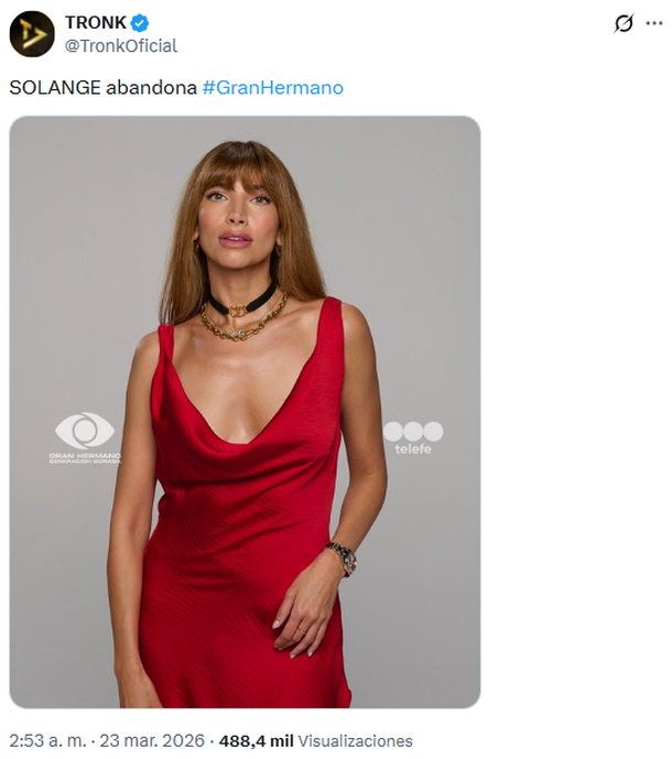 En tanto, Tronk simplemente se encargó de revelar que "Solange abandona #GranHermano", sin más comentarios al respecto.