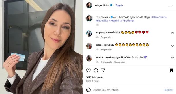 También, Cristina Pérez expresó su alegría en medio de la jornada electoral: "El hermoso ejercicio de elegir", escribió en su cuenta de Instagram.