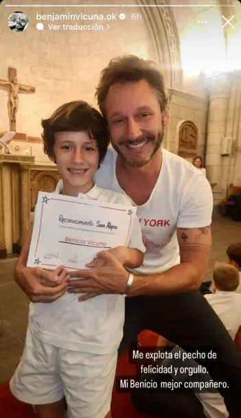 En la misma historia, Benjamín agregó unas palabras para transmitir sus sentimientos y escribió: "Me explota el pecho de felicidad y orgullo. Mi Benicio mejor compañero".