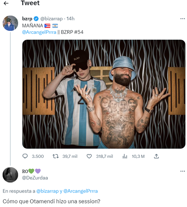 El exitoso músico y productor argentino anunció en sus redes sociales su nueva Session #54 con Arcángel pero para las redes no es con el músico estadounidense si no con el campeón del mundo Nicolás Otamendi.
