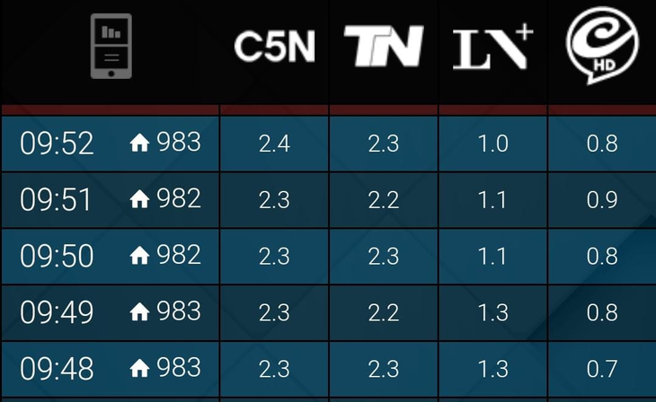 En un mano a mano interesante, "Argentina en vivo" por C5N le saca una pequeña luz de diferencia a TN, canales que duplican al resto de la competencia.