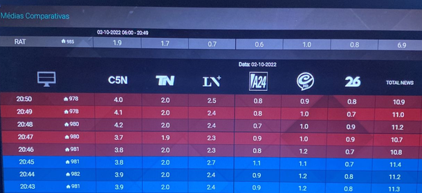 C5N duplicó a la competencia directa en las noticias, TN y La Nación+, superando también con comodidad a El Nueve y América TV.