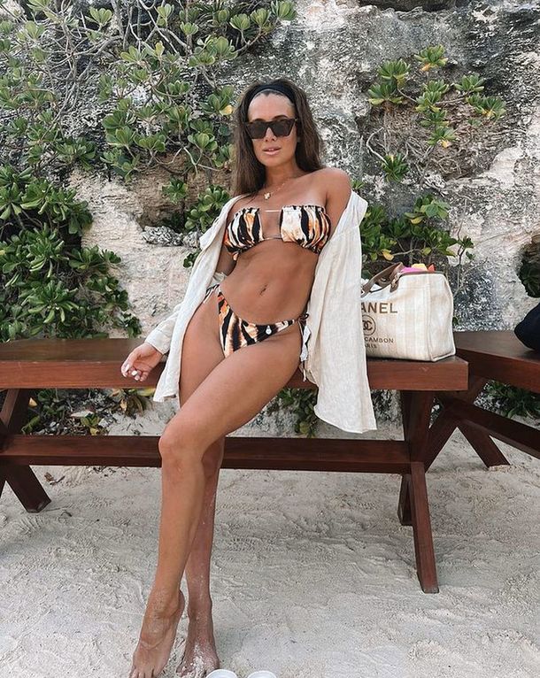 La ex de Rodrigo De Paul, Camila Homs, posó como una supermodelo con una microbikini animal print en Playa del Carmen, donde disfruta de unos días de vacaciones junto a sus hijos.