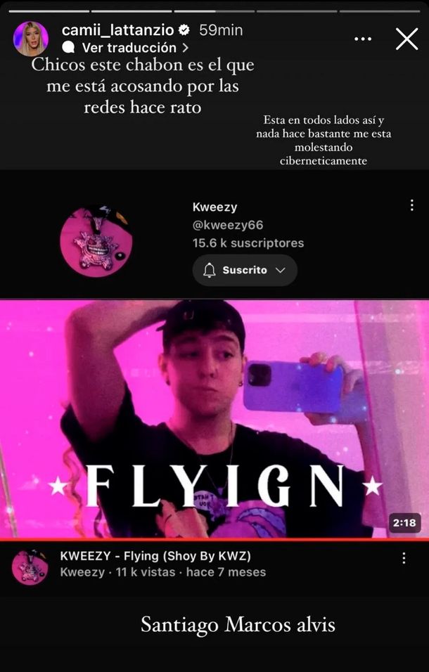 Se trata de Santiago Alvis @kweezy66, un joven cantante que tiene 14 mil seguidores en Instagram y más de 15 subscriptores en YouTube. La ex Gran Hermano no dio más detalles de las circunstancias que motivaron su denuncia.