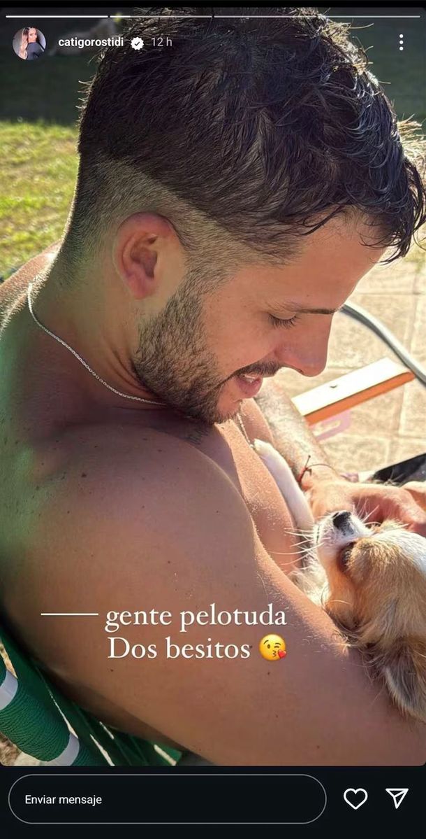 Ante las críticas, la médica decidió responder a los insultos y acusaciones publicando una imagen en sus historias de Instagram, en la que se la veía a su novio abrazado con el perro, acompañada de un mensaje que decía: “Gente pel...., dos besitos”.