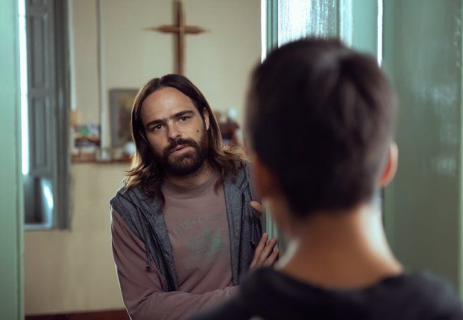 - Chino Darín: Mi personaje es Julio Clamens. Un pibe de una familia bien, el padre es político, él es abogado y de alguna forma se crió en conflicto con el lugar de donde venía y lo que le tocaba vivir. Le tocó sufrir o vivir situaciones bastante heavys en el pasado y vamos a ver a este personaje recién llegado a la familia del pastor Emilio, que es el personaje que interpreta Diego Peretti, la cabeza de esta iglesia evangélica que nos va a llevar de la mano de toda esta historia.