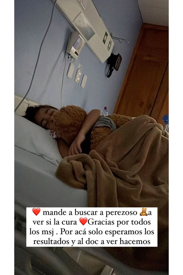 En otra historia, compartió una foto de la nena con su osito, al que mandó buscar: “Es perezoso, a ver si la cura. Por acá solo esperamos los resultados y al doc a ver qué hacemos”.