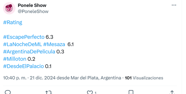 El rating del programa de Mirtha Legrand en El Trece tuvo este sábado 21 de diciembre de 2024 un rating más alto del normal, al que estuvo relacionado al fuerte cruce que tuvo con el ex marido de Pampita, conocido en la intimidad como Roberto García Moritán.