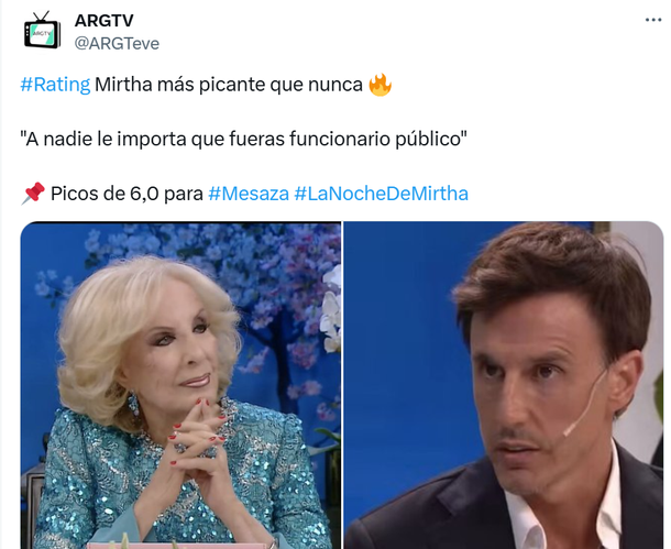 Los números del rating de La Noche de Mirtha Legrand fueron los mejores de los últimos tiempos, arrancando con 6 puntos, algo que no era habitual.