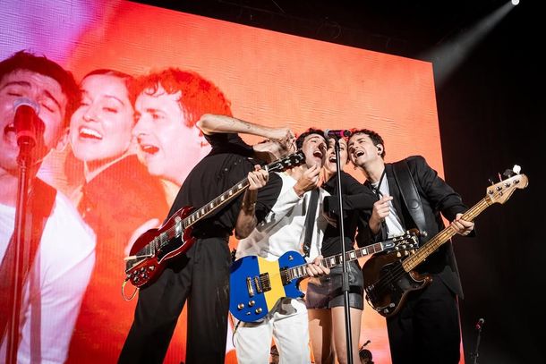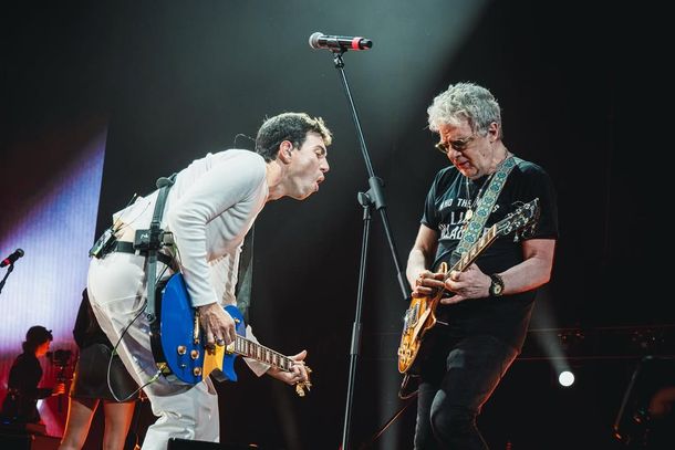 La banda regresó completa, con Esmeralda Escalante de Ainda acompañando guitarra y voces durante todo el show, destacándose especialmente en “Adiós” (feat de ambas agrupaciones) y “Cinco horas menos”. En “Tu encanto”, la guitarra personalizada de Mateo con los colores de Boca Juniors sumó un detalle visual. “Bruja de Barracas”, con final extendido y la participación de Juanse, y “Para siempre”, himno de los Ratones Paranoicos, también con él, ofrecieron momentos explosivos de comunión entre escenario y público.