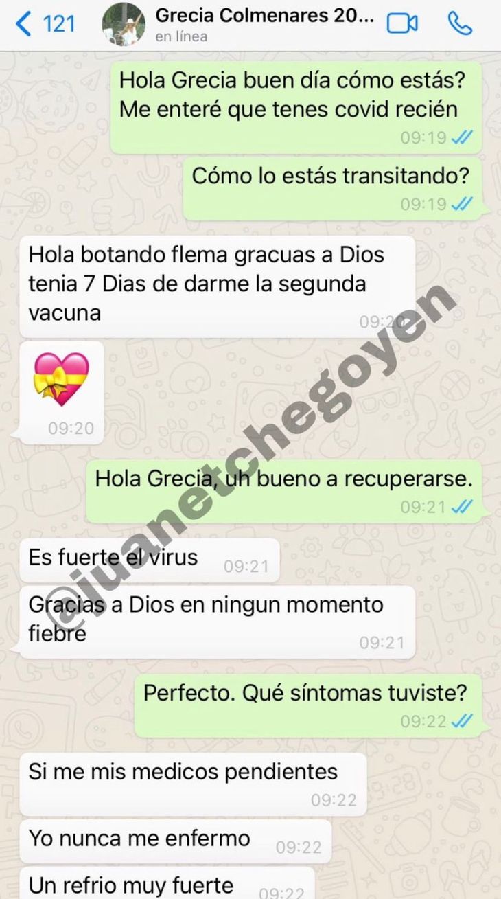 Además, el comunicador informó que Grecia tuvo falta de gusto y que se sintió cansada en los últimos días.