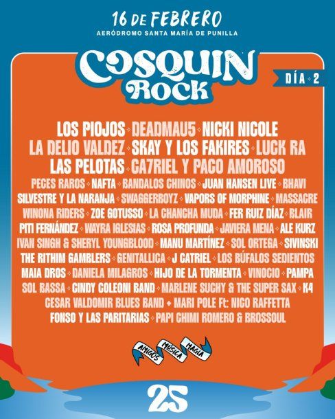 Después de que se diera a conocer la grilla con las bandas que estarán presentes en este Cosquín Rock 2025, que se celebrará el 15 y 16 de febrero, informaron cómo será el festival día por día.