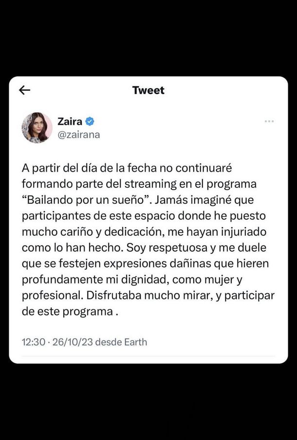 Ante esto, Zaira Nara renunció al Bailando 2023 y lo anunció a través de un fuerte comunicado en sus redes: