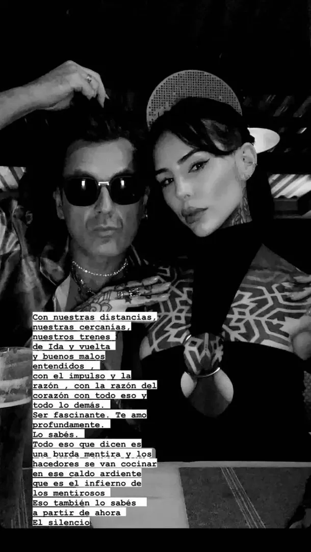 "Con nuestras distancias, nuestras cercanías, nuestros trenes de ida y vuelta y buenos y malos entendidos, con el impulso y la razón, con la razón del corazón, con todo eso y todo lo demás. Ser fascinante, te amo profundamente, lo sabés", empezó diciendo Coti a través de las historias de Instagram junto a una imagen en la que está con Cande Tinelli.