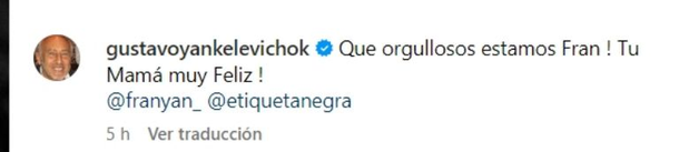 "Que orgullosos estamos Fran! ¡Tu mamá muy feliz!", escribió su abuelo.