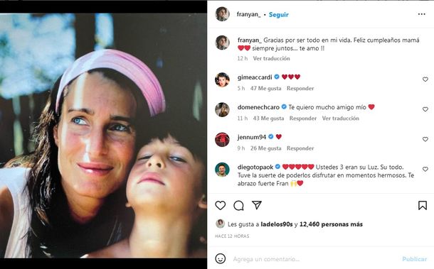 Franco, el hijo mayor de Romina y Darío Giordano, también publicó un sentido mensaje a su mamá: “Gracias por ser todo en mi vida. Feliz cumpleaños mamá. Siempre juntos… Te amo!!”.