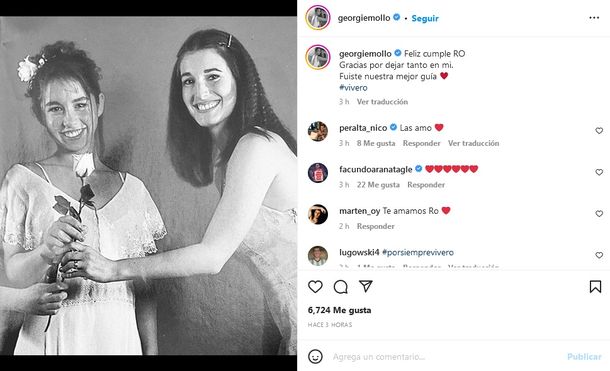 La actriz Georgina Mollo compartió una foto juntas y escribió: “Romina, almita elegida. Te recordamos con tanto amor. Gracias por dejar tanto en mí. Fuiste nuestra mejor guía”.