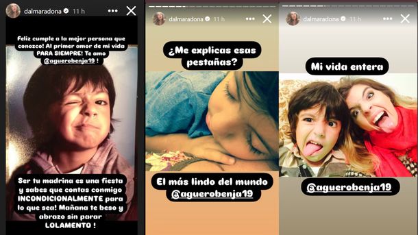 Después de esta foto, Maradona siguió compartiendo algunas imágenes de su ahijado donde se pueden ver viajes compartidos, momentos alegres y hasta deseos de sueños por cumplir. Así Dalma Maradona volvió a demostrar que, para ella, su familia es su estandarte, en especial Benjamín quien se convirtió en su debilidad.