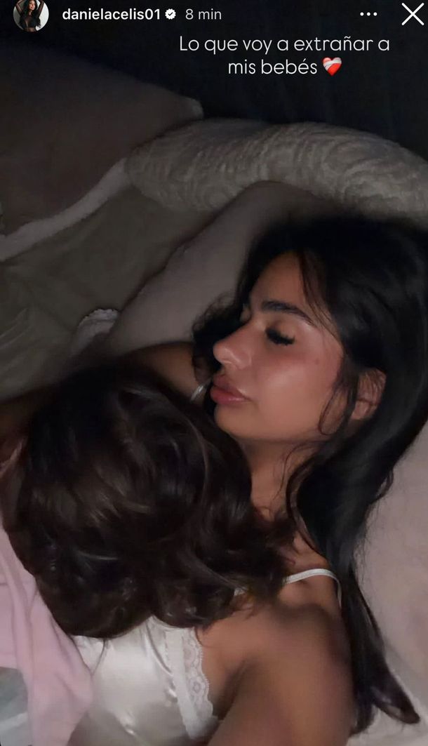 Este mismo sábado, minutos después de las 21 horas, la influencer compartió un momento íntimo desde su habitación, acompañada por sus hijas, y expresó el sentimiento que la atraviesa ante la próxima separación: " Lo que voy a extrañar a mis bebes", escribió junto a un emoji de corazón con curita.