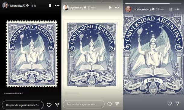 Derivado del primer reclamo, Oreiro compartió un dibujo con el escudo que representa a la educación pública universitaria. Su lema dice: "Universidad argentina. Gratuita, pública y federal". En tanto, Julieta Díaz, replicó también esa imagen del perfil del productor teatral Sebastián Blutrach, diseñado por Pilar dibujito. En tanto, Carolina Aguirre, directora de la serie "Envidiosa", hizo lo propio.