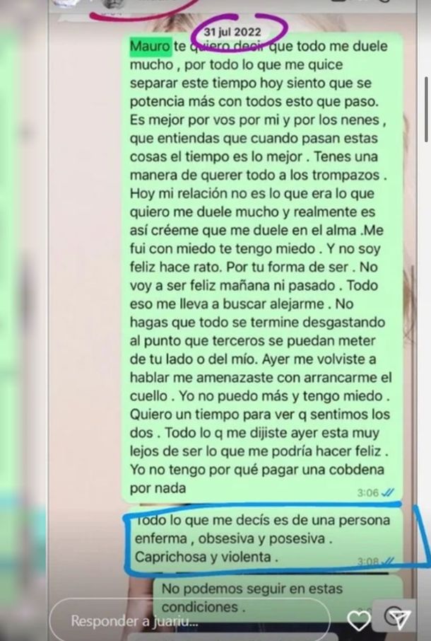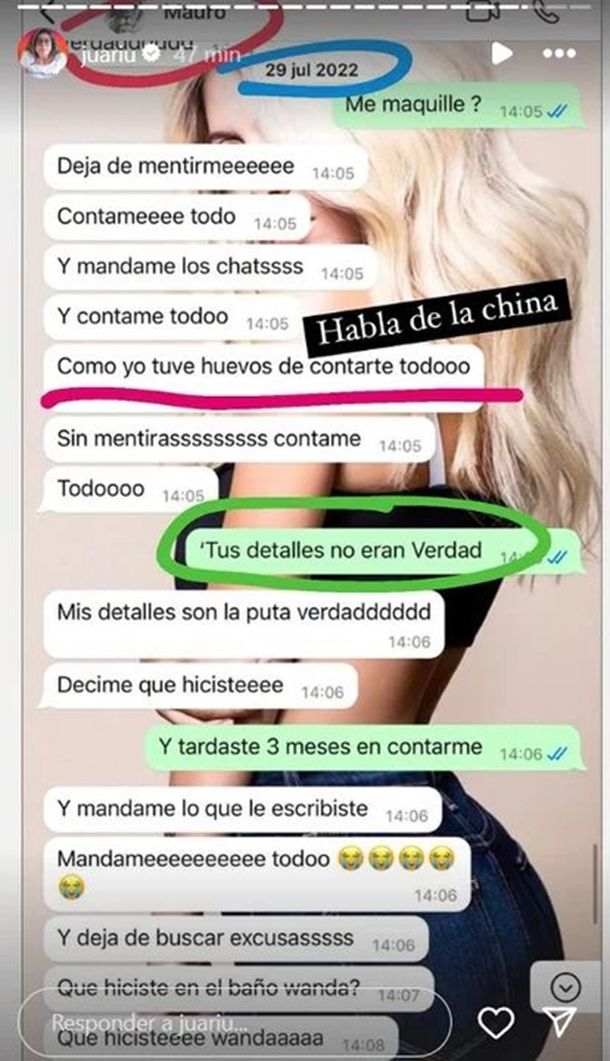 En los intercambios también se revela que Mauro reconoció su affaire con la China Suárez, ocurrido en octubre de 2021, cuando Wanda lo acusó de “destruir una familia”.