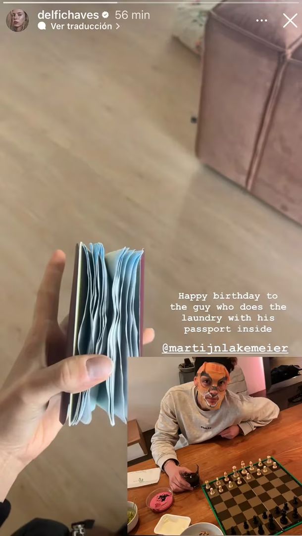 “Feliz cumpleaños al chico que lava la ropa con el pasaporte adentro”, escribió la actriz en Instagram. El posteo contiene dos imágenes: una que deja al descubierto el percance que sufrió el artista con sus documentos y otra donde se lo puede ver con una máscara facial con diseño de tigre.