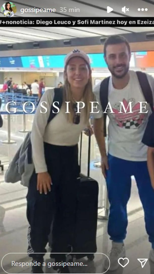 “¿Reconciliación para Diego Leuco y Sofi Martínez? Hoy 11 am, juntos en Ezeiza”, escribió Pochi desde la cuenta de Instagram @gossipeame y detalló: “Él la despidió a ella. Viajó sola. Se quedó mirándola cuando subió las escaleras para embarque”.