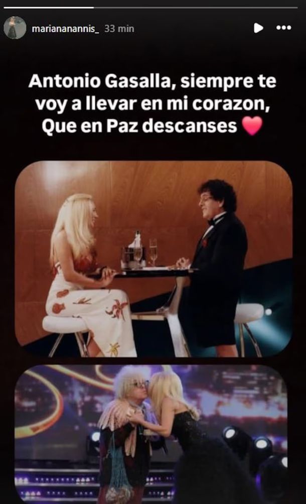 Mariana Nannis, desde Instagram, compartió dos fotos junto a Gasalla y escribió: “Siempre te voy a llevar en mi corazón. Que en paz descanses”.